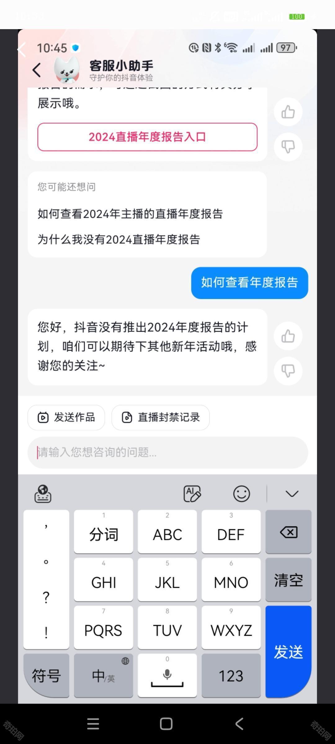 答:2024年没有个人年度报告,只有抖音电商足迹报告和主播年度报告