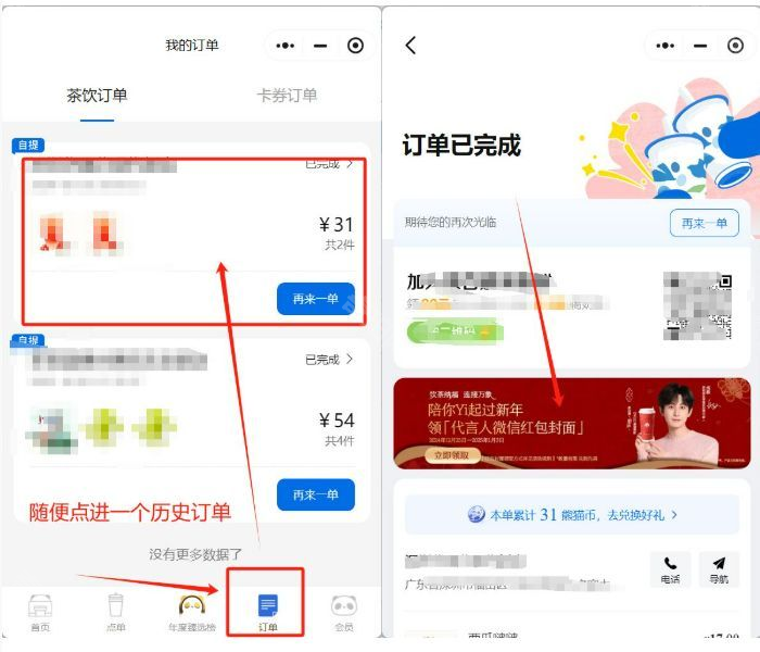 领取方法:在茶百道下过单的才可以领取(没下过单的忽略~),自行搜索进入茶百道小程序,点击任一历史订单,详情页面可看到红包封面活动横幅,点击“立即领券”即可获取序列号。