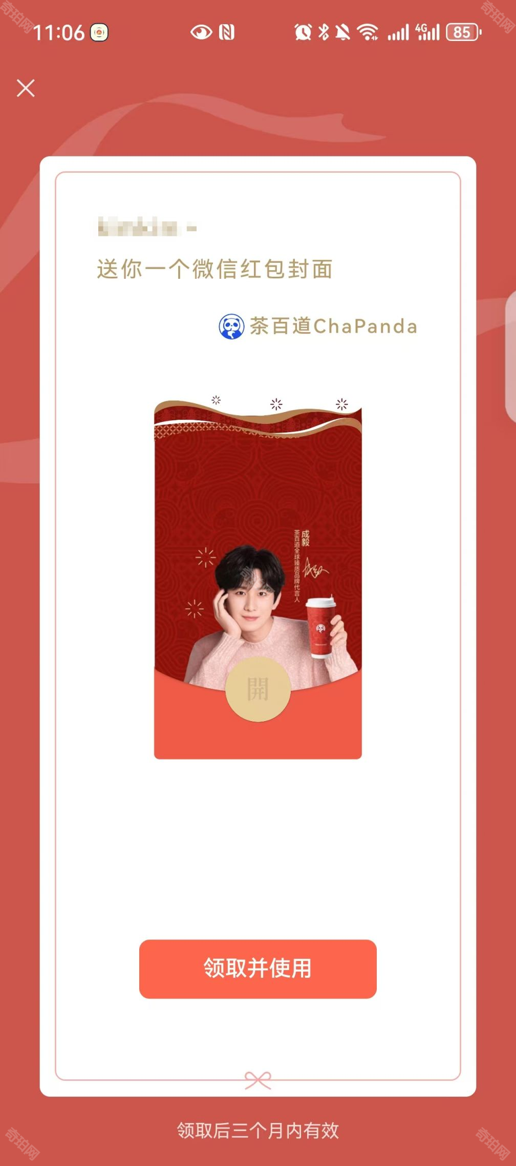 六、茶百道X成毅红包封面