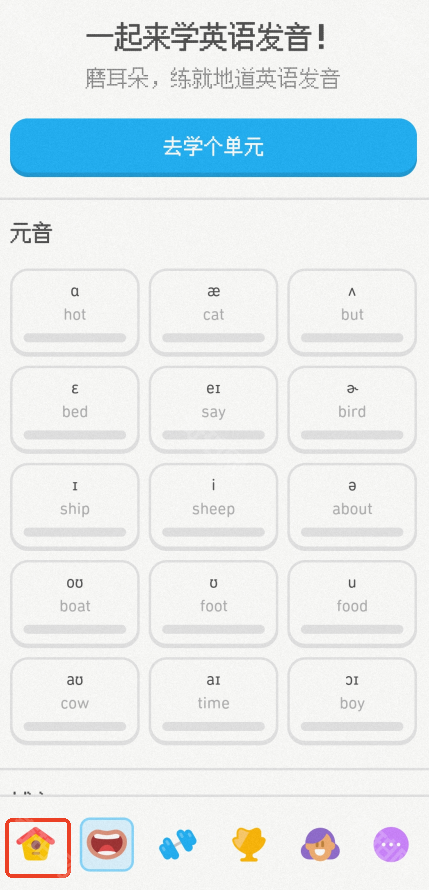 1、打开多邻国app,切换到左下方房子的页面