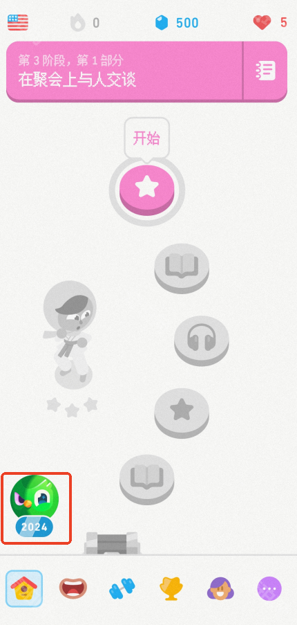 2、在这个界面的左下方有一个多邻国2024的图标,点击进入