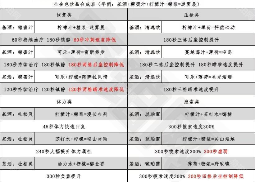 每款金色饮品都有不同的增益效果,同样的也会带来负面效果。