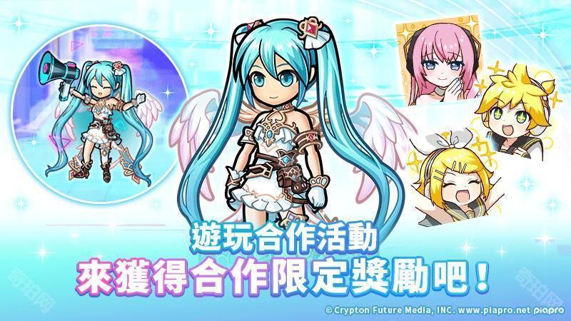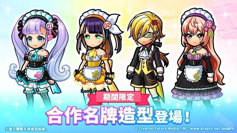 虚拟歌手《初音未来》系列中的「初音未来」、「镜音铃」、「镜音连」及「巡音流歌」等角色换上合作原创的可爱服饰,作为全新合作角色于游戏中登场。