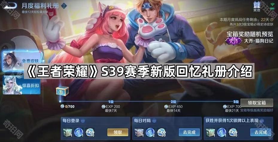 王者荣耀S39新版回忆礼册怎么样?回忆礼册是游戏王者荣耀中的一个常驻福利活动,我们每个月都可以通过回忆礼册来免费获得一款随机皮肤。这个福利活动在游戏最新的S39赛季中将进行改动,接下来就和七珀小编一起看看《王者荣耀》S39赛季新版回忆礼册介绍吧。