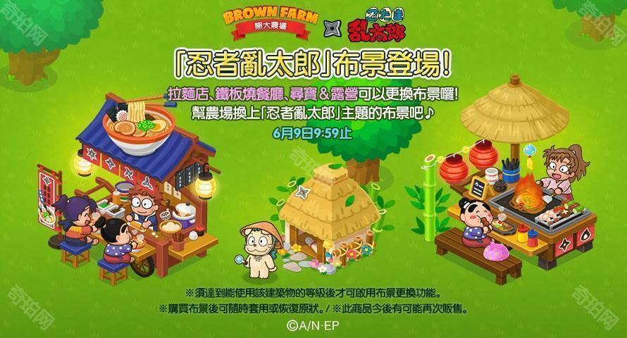 可改变农场建筑物外观的「忍者乱太郎」布景来啰!本次将推出拉面店、铁板烧餐厅、寻宝&露营的特殊布景,限时登场的布景须达到能使用该商店的等级才可启用,布景取得之后可以永久使用,也能随时更换或恢復成原状,快来帮农场换上「忍者乱太郎」主题的布景吧。