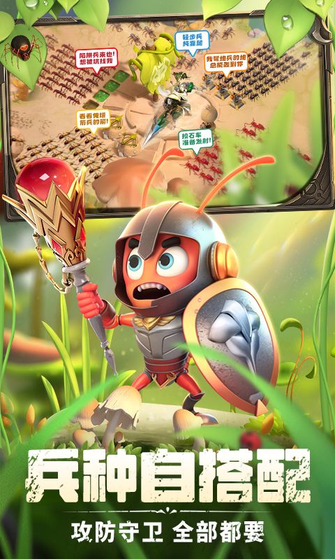 造蚂蚁王国,与何止百万玩家斗智斗勇,招蚁族豪将,丰富阵营赢下战争!在《蚁族崛起》你将作为蚁族统帅,建造你的专属蚂蚁王国。神机妙算的三国英雄、智勇双全的凯撒,还有数位出类拔萃的豪将,都等待你招募入队,成为蚁族中坚!通过资源囤积、城防修建、战力提升,将一方蚁穴壮大成为兵「蚁」强壮的王国城邦!与百万玩家结盟或是为敌,抵御强敌进攻,联手攻克城池,战无不胜,攻无不取,成为地下世界的霸主!与此同时,游戏还采用技术前沿的引擎开发,呈现高品质的画面。画面还原蚂蚁与战争细节,玩家可以尽情感受微观世界的对决乐趣,在神奇的蚂蚁世界中招兵征战。