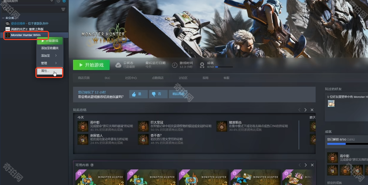 1、首先我们在Steam游戏库中找到游戏名称,右键点击属性