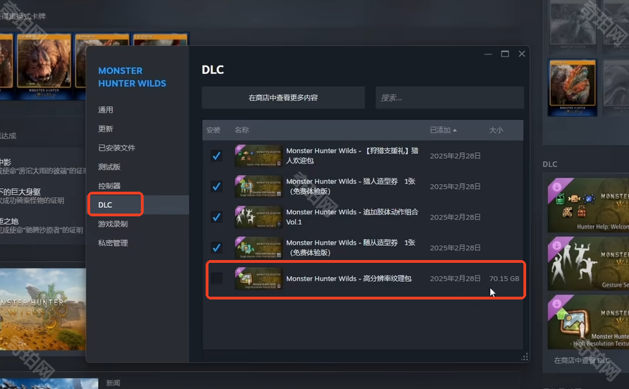 怪物猎人荒野高清材质包怎么删除?游戏怪物猎人荒野和怪物猎人世界一样会给玩家提供高清材质包下载,不过我们在下载游戏时这个高清材质包也会自动下载到我们的电脑上。不是非常好的电脑基本上都不会使用这个高清材质包,那么我们怎样才可以删除这个占据我们70G空间的高清材质包呢?接下来就由7珀小编给大家带来《怪物猎人荒野》高清材质包DLC删除方法吧。