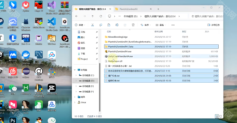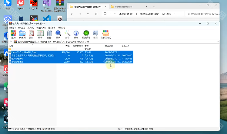 1、首先下载植物大战僵尸融合版二创版压缩包