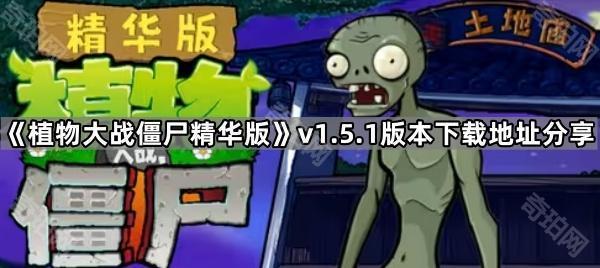 植物大战僵尸精华版1.5.1版本在哪下载?PVZ精华版已经更新至1.5.1版本,这个版本没有太多的改动,作者主要对游戏bug进行了修复并且对游戏的平衡性进行了调整。那么接下来就和奇珀小编一起看看《植物大战僵尸精华版》v1.5.1版本下载地址分享吧。