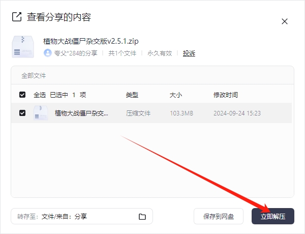 1、复制上方链接打开夸克网盘,会自动跳出分享数据,点击“立即解压”。