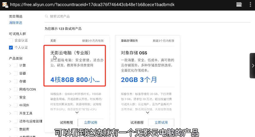 3、进入第二页可以看到这边就有一个无影云电脑的产品。