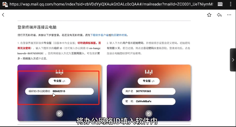 9、进入后先同意相关协议,这里根据邮箱内容来填写,将办公网络ID填入软件内。