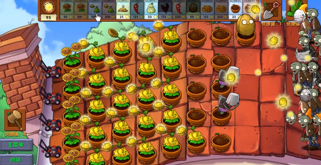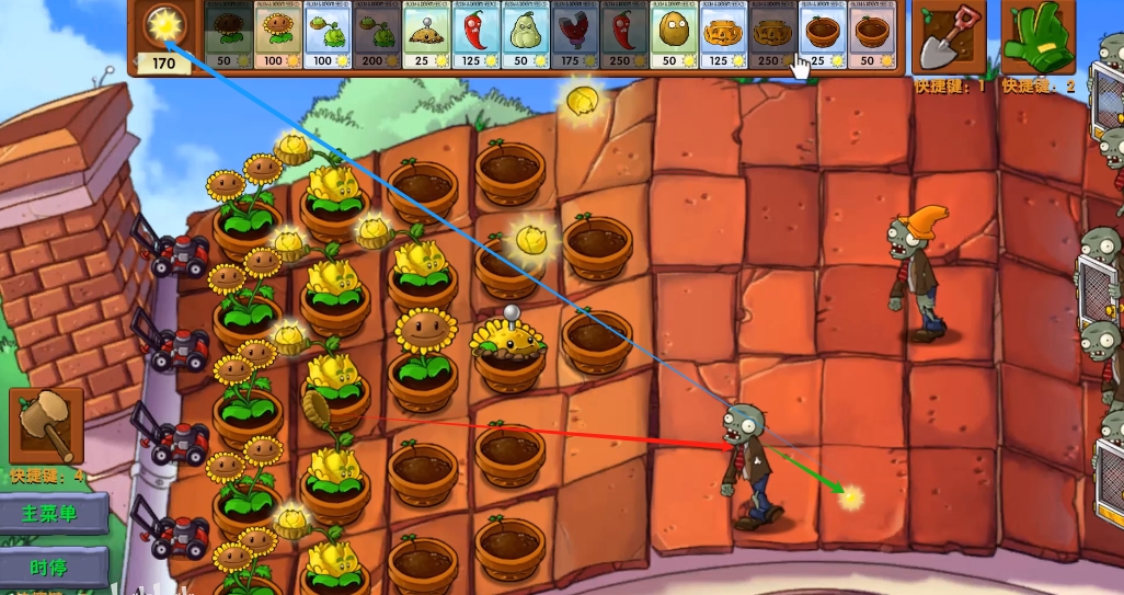 同一个僵尸只能被击中一次,击中地面也掉落5阳光,阳光储备每增加100,弹射次数+1,最多5次。