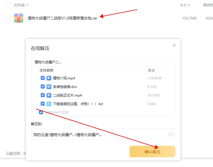 2、然后进入转存文件里面查看,点击文件压缩包,点击【确认解压】。