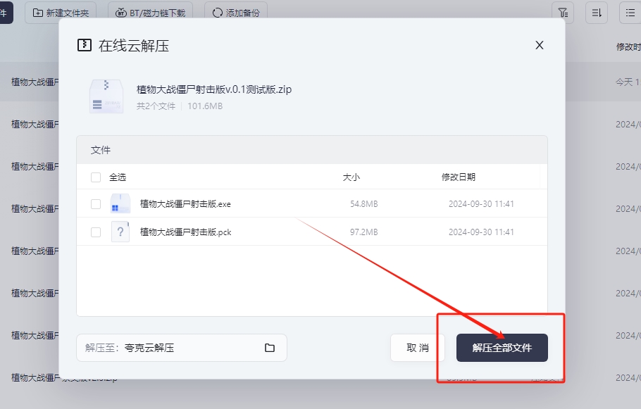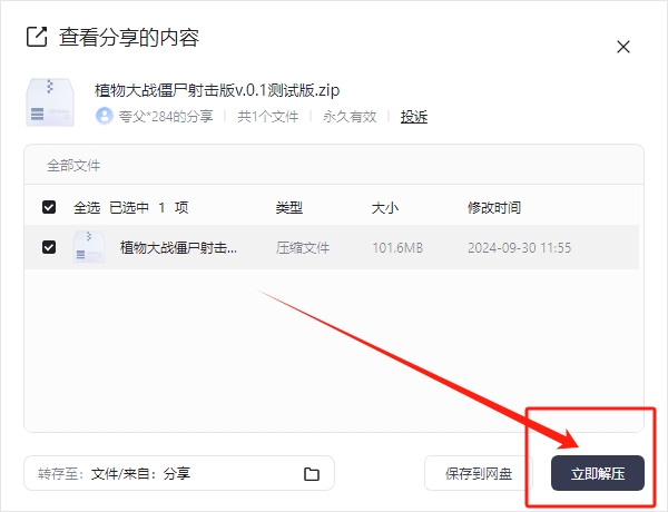 1、首先复制上方链接到浏览器或者夸克网盘,点击会跳转弹窗,点击“立即解压”。