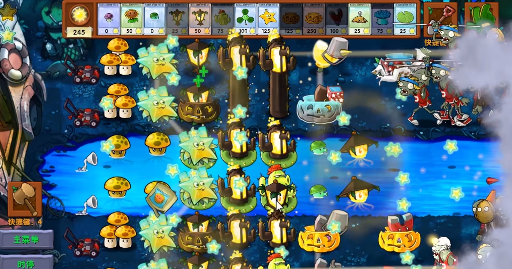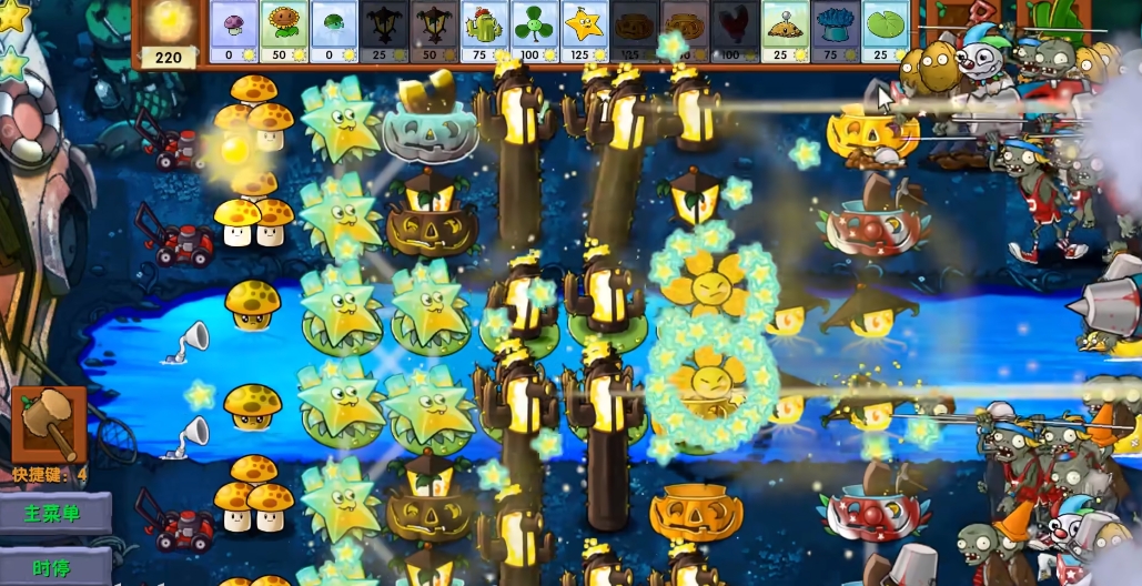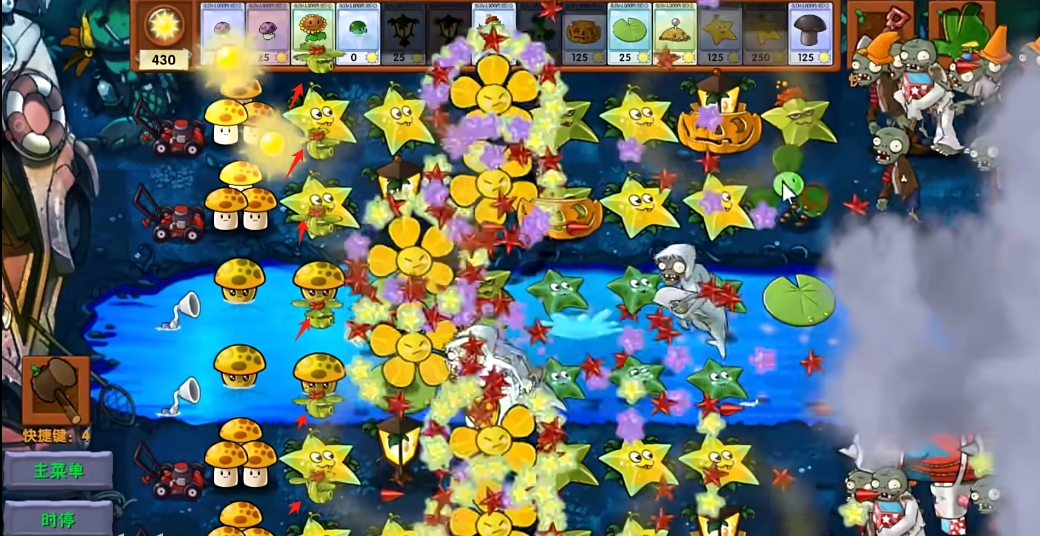 5、海星射手的星星是四散攻击的,有了仙人掌杨桃可以帮助星星回来向僵尸方向进行攻击。