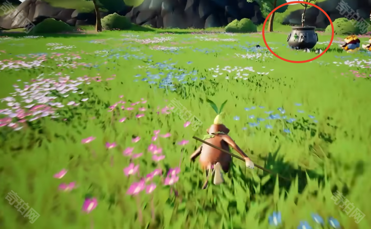 1、首先我们在地图的池塘中可以发现一个红色的魔丹,靠近并交互就能触发剧情