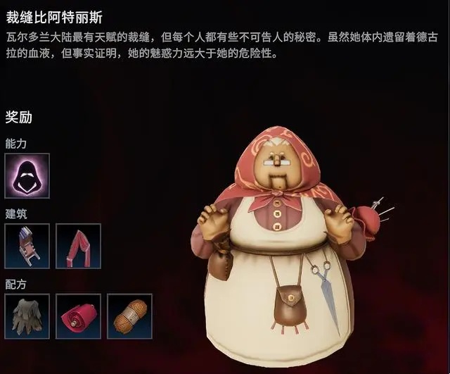 该角色并没有战斗能力,只会一直逃跑,但身处村庄,玩家需要一边面对守卫村庄的士兵,一边追杀裁缝比阿特丽斯