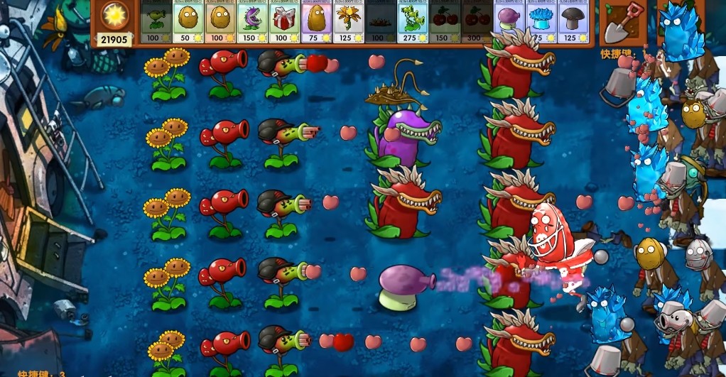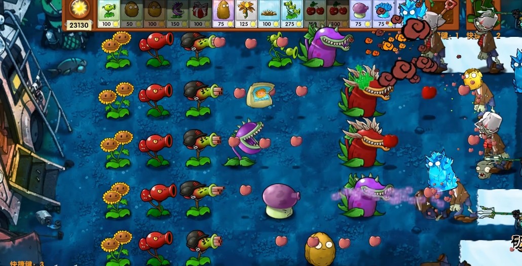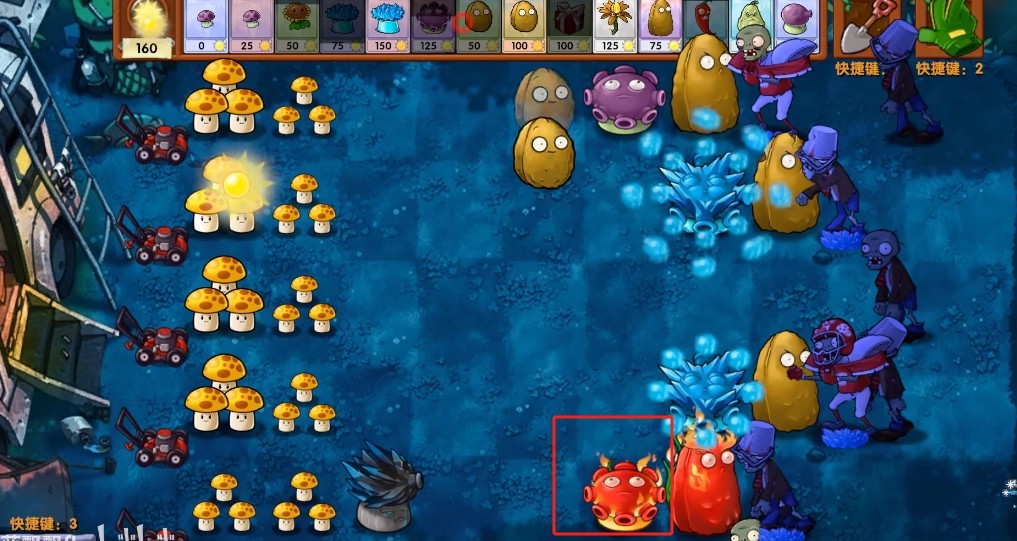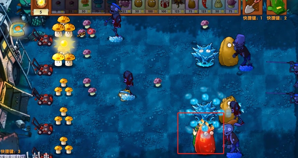 2、每点燃20个子弹召唤一个火爆窝瓜,如果在水里则召唤睡莲和火爆窝瓜。