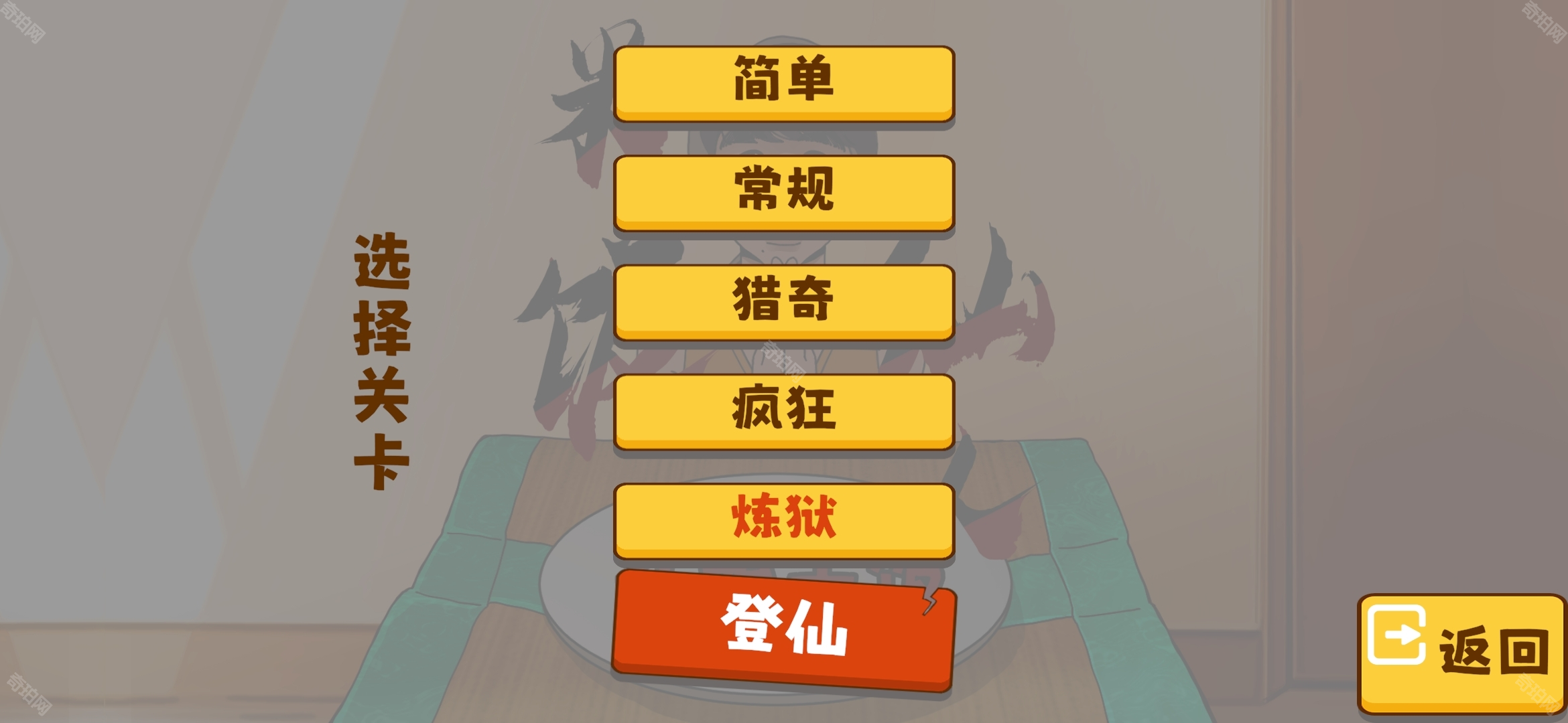 1、玩家下载进入游戏后可以选择关卡难度