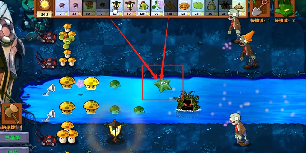 1、仙人掌+三叶草,不占格子,不可被僵尸选中,空中单位且仅对空中僵尸发起攻击,攻速0.75s ,每次发射一枚20伤害的尖刺。