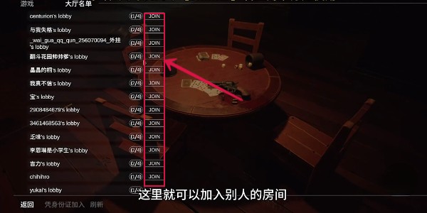 3、在大厅列表里面可以随意选择一个房间点击“JOIN”加入。