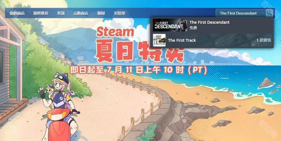 1、进入steam,在右上角搜索The First Descendant,点击下拉行的第一个游戏