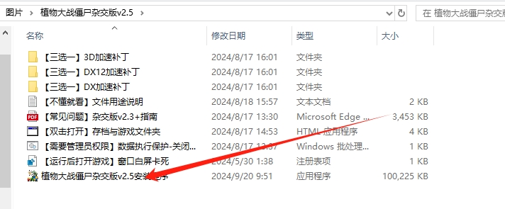 4、下载完成后,在本地点开文件包,点击[植物大战僵尸v2.5安装程序]。
