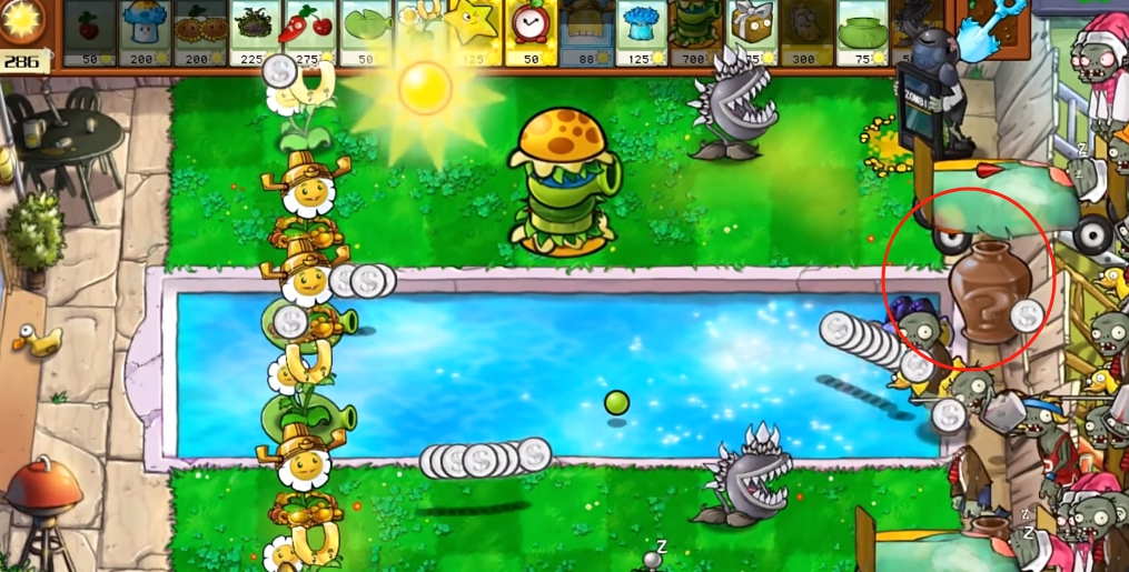 5、当该植物消失时,对本格内的所有僵尸造成1800伤害。