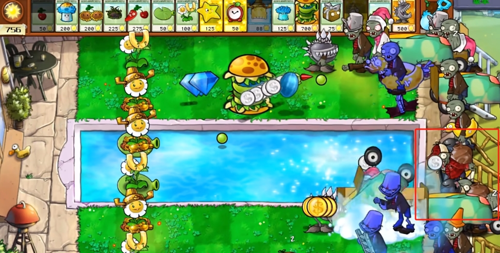 钻石铲:铲掉一颗植物,然后回收x阳光,x等于该植物价格的30%,向下取整