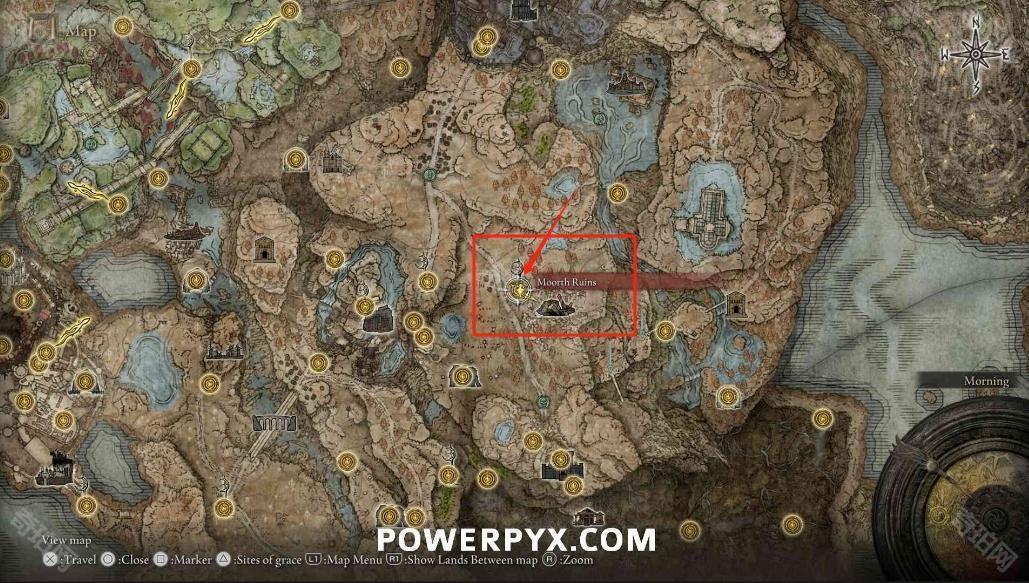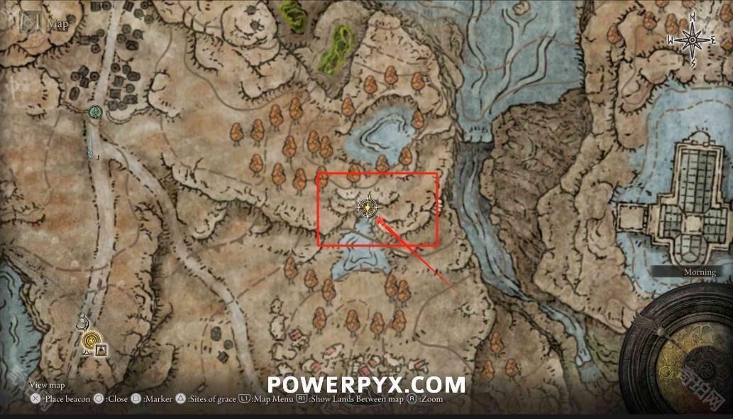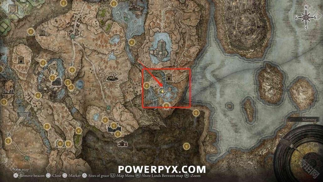 3、摩尔斯遗迹以北,洞穴入口处,经过一处水池。(这是通往西北地图碎片的洞穴)