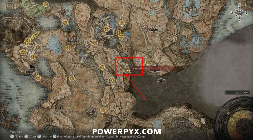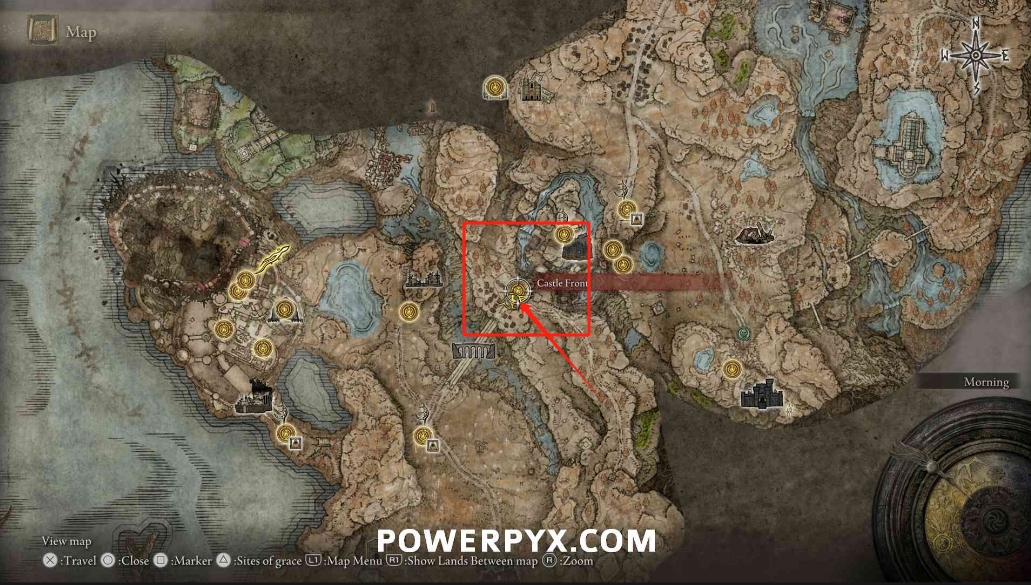 5、恩典之地:城堡正面,在道路分叉处的恩典之地前的祭坛雕像上。