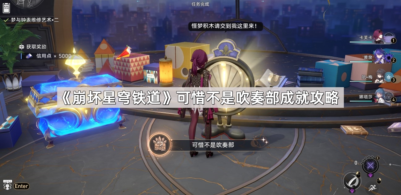 崩坏星穹铁道可惜不是吹奏部四个梦境迷钟怎么解谜?这个成就首先需要找到“晖长石号”上的所有「梦境迷钟」(共4个),然后再修复一个大的迷钟就可以了,那么接下来就跟着小编一起来了解一下《崩坏星穹铁道》可惜不是吹奏部成就攻略。