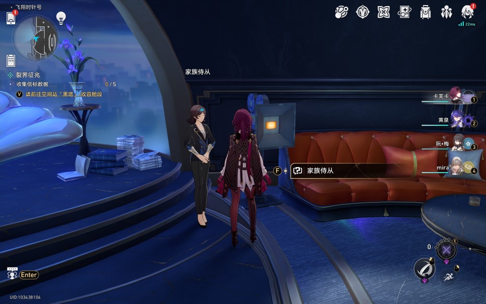 1、传送至“晖长石号”(在完成任务《云帆归心》后,此处地名将变为自取的船名),“中舱休息室”锚点
