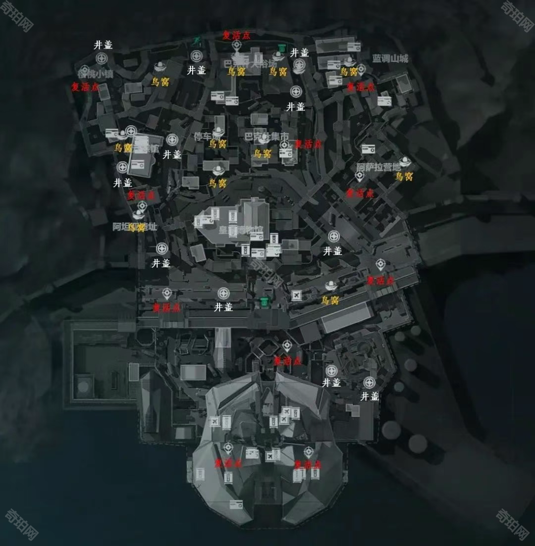 注:以下地图标点主要针对大小保险箱、航空箱、鸟窝和井盖,用不到房卡