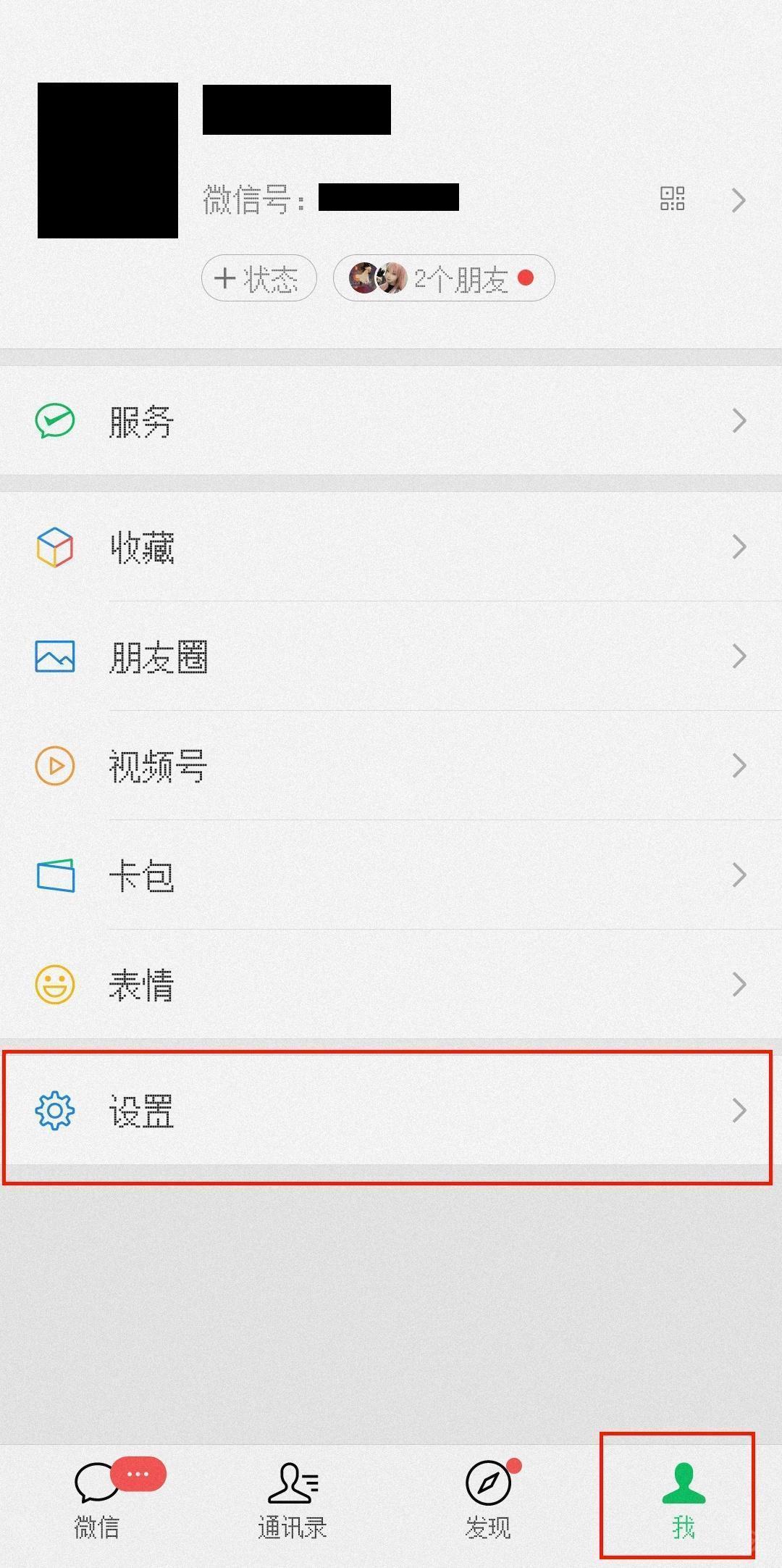 1、打开微信,进入我的页面,选择设置