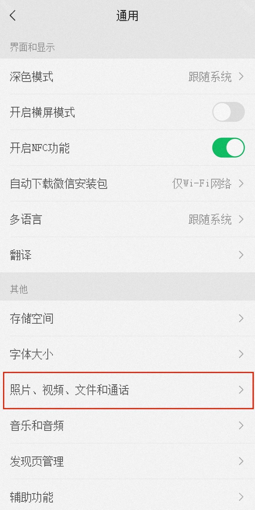 答:我→设置→通用→照片、视频、文件与通话