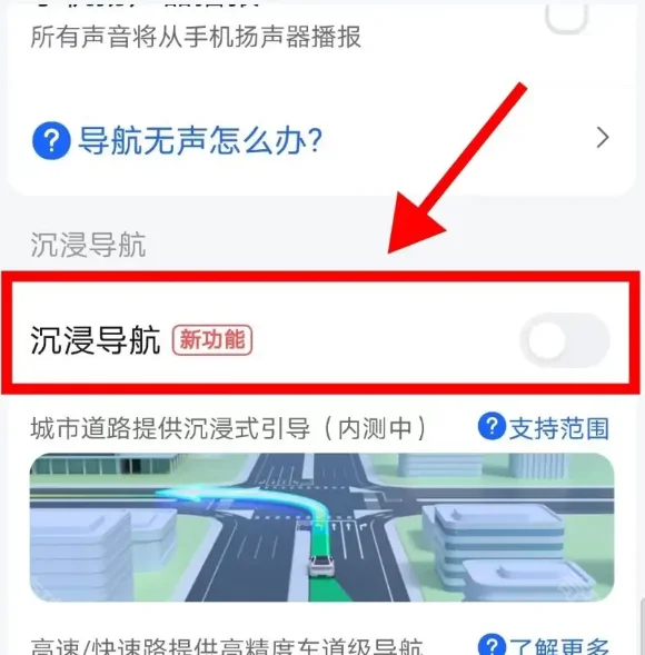 答:我的→设置→导航设置→沉浸导航
