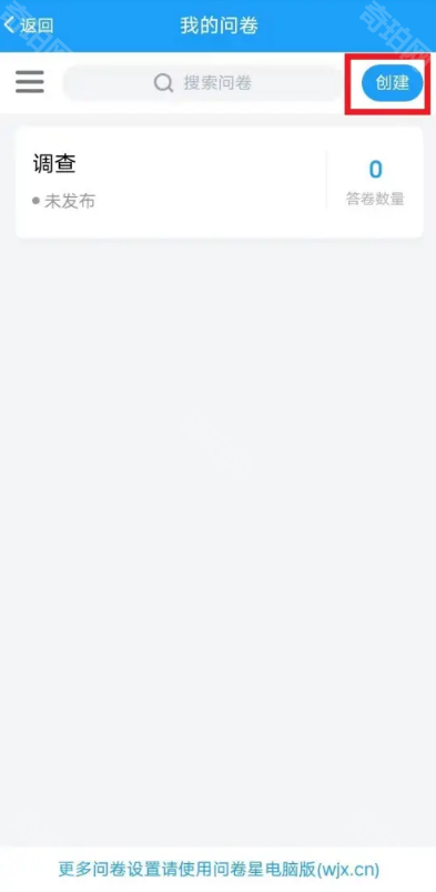 1、打开问卷星APP,进入我的问卷页面,点击右上方的创建
