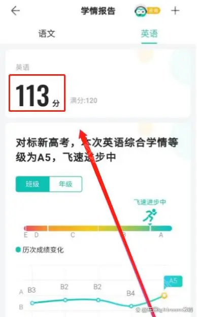 3、绑定后进入学情分析页面即可查看各科成绩
