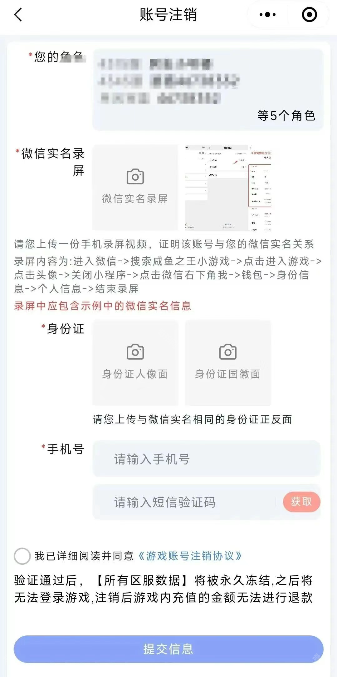 即整个咸鱼之王所有区服账号信息都会注销