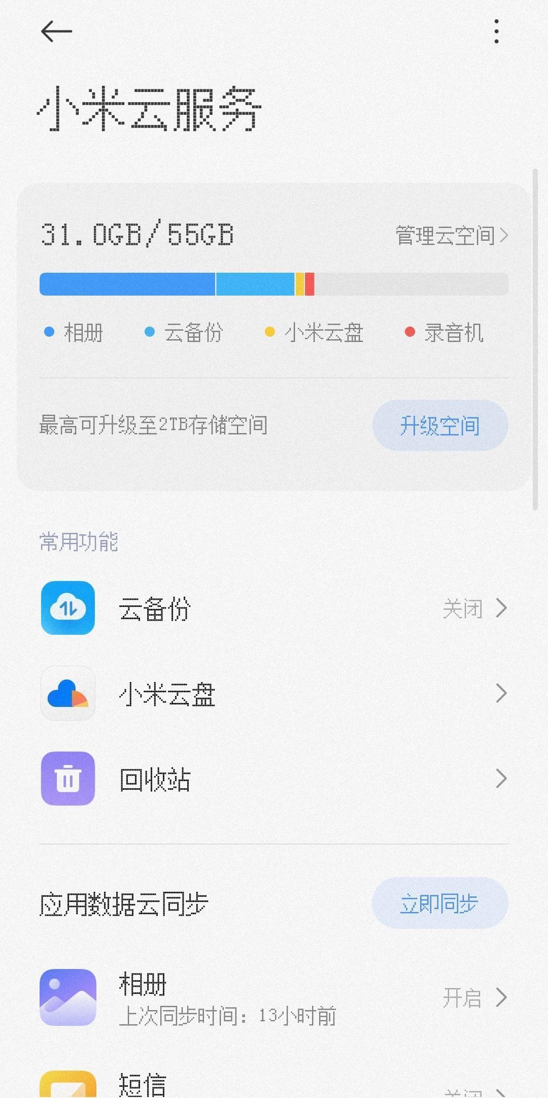 答:设置→小米账号→云服务