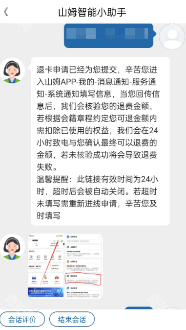 答:在山姆服务助手中联系人工,填写相关信息后即可退卡