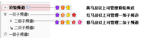频道管理员,可以进行频道的管理,子频道的管理分配、添加会员等操作