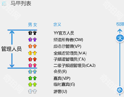 yy马甲颜色代表什么?软件YY是一款线上语音软件,用户可以创建自己的频道并给频道中的其他用户设置权限。用户的权限等级是用马甲的颜色来提现的,很多小伙伴还不太清楚yy频道中的马甲颜色代表有什么权限,那么接下来就和小编一起看看《YY》马甲颜色等级表吧。