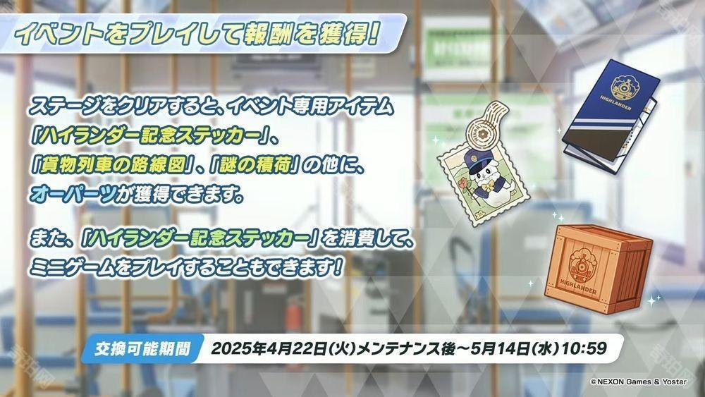完成 Quest 时可获得活动货币「高地人纪念贴纸」、「货物列车的路线图」、「神秘货物」、以及欧帕兹。