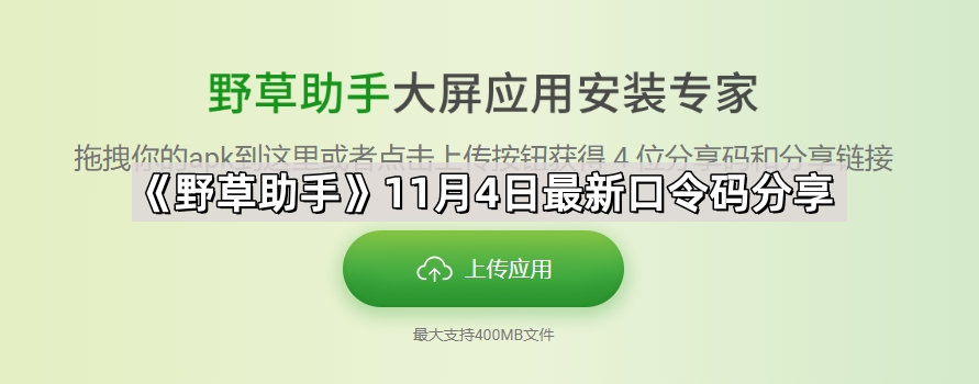 野草助手11.4最新视频口令是什么?新的一周已经开启,今天给大家带来了新的口令码,大家可以使用口令码在野草助手上面下载软件来观看电视剧了,那么具体的接下来就跟着小编一起来了解一下《野草助手》11月4日最新口令码分享。