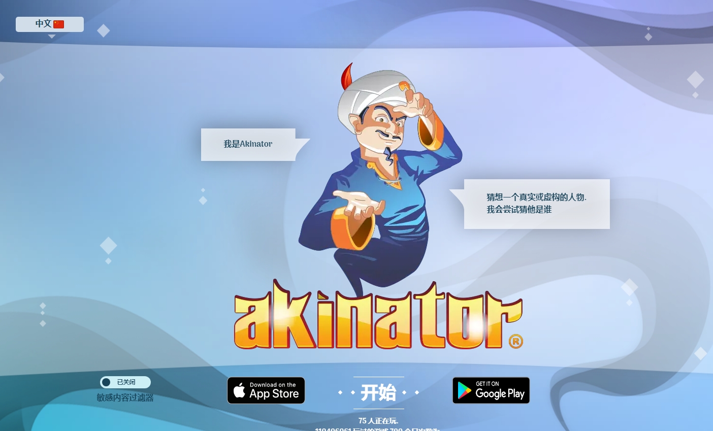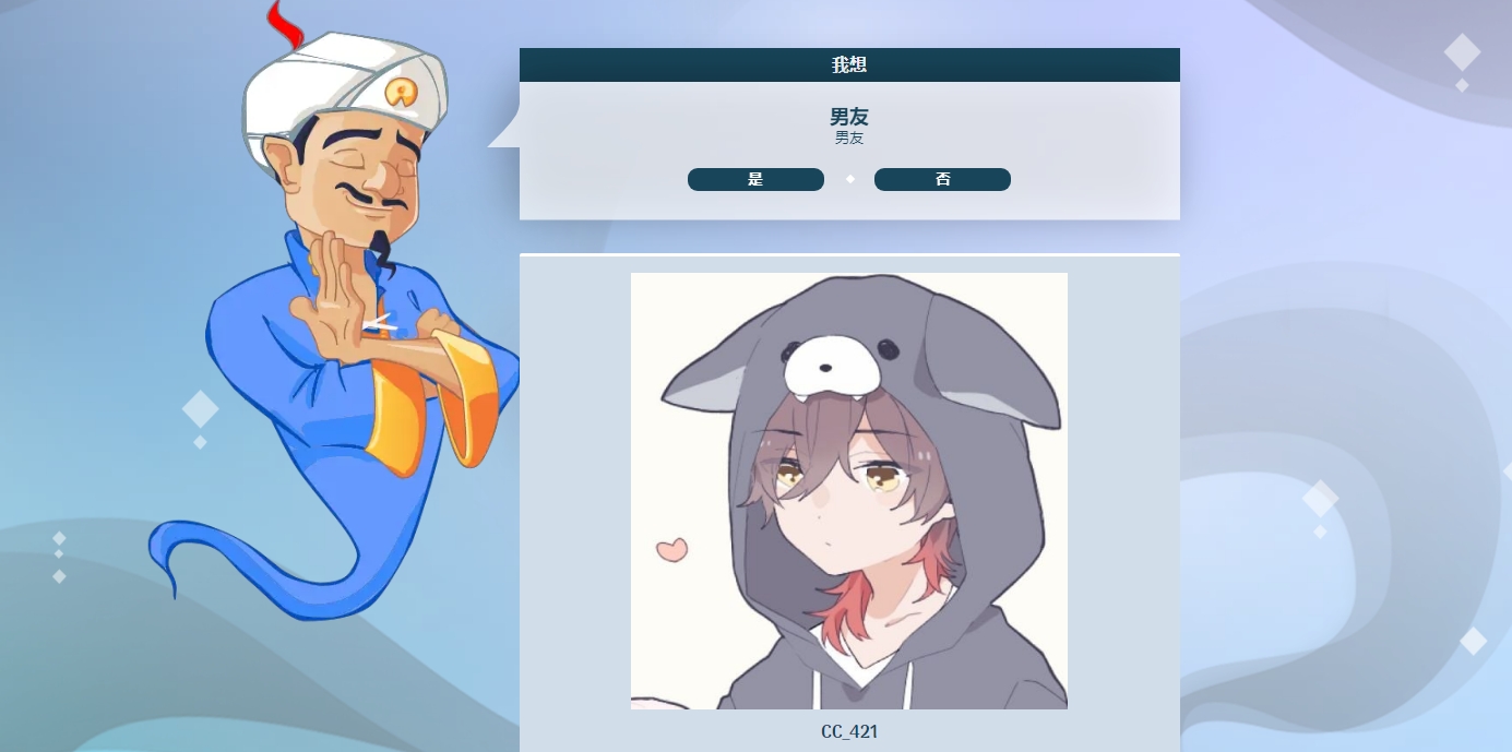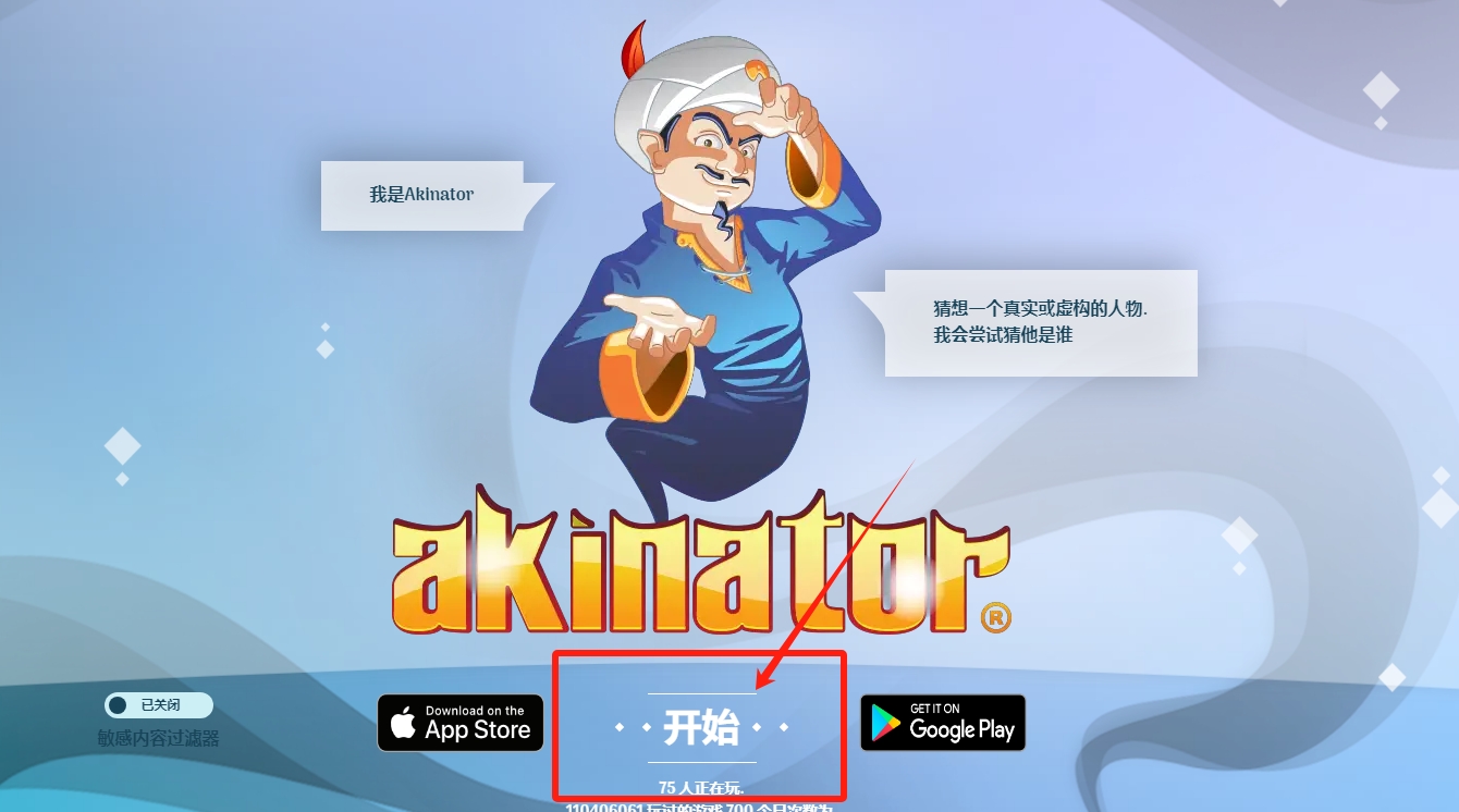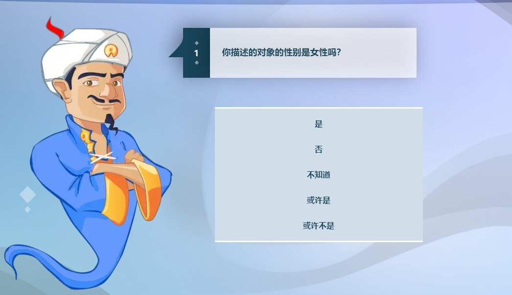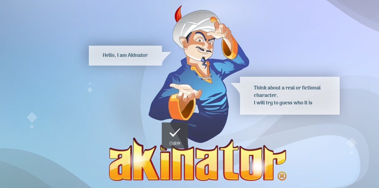 阿拉丁猜人名网页版入口:https://cn.akinator.com/(使用科学上网工具打开哦)