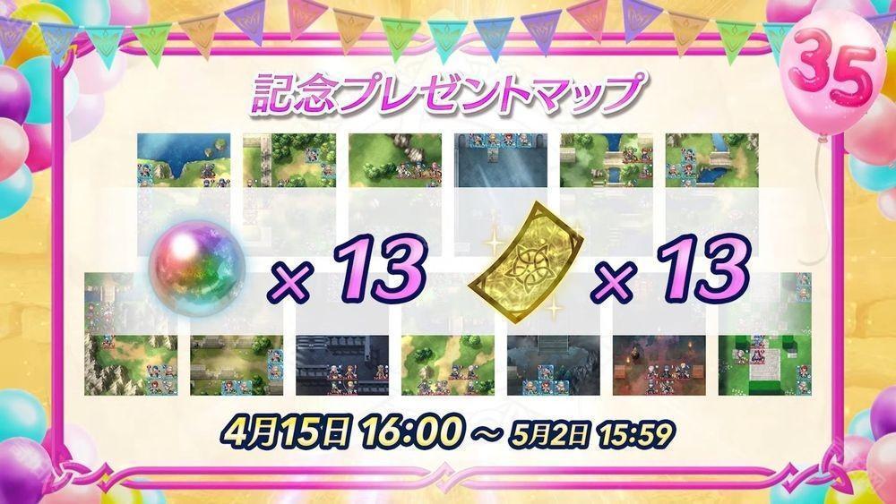 将连续 13 天发布从《火焰纹章 纹章之谜》到《火焰纹章 Engage》,以各部系列作品作为主题的礼物地图。过关普通难度后可获得宝珠,而过关困难难度后则可获得保证召唤超★4 特别机会的召唤券。在保证召唤超★4 特别机会中, 可让至版本 6.1 为止登场的★5 超英雄们成为伙伴。
